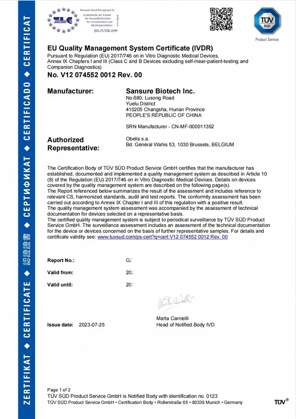 此次金年会jinnianhui生物HPV13+2核酸检测试剂获得CE IVDR认证,是公司产品性能及国际化质量体系升级的重要成果,奠定了公司在欧盟市场的先发竞争优势,扩展了公司产品的市场覆盖范围,为进一步拓展海外客户群提供了强有力支持。