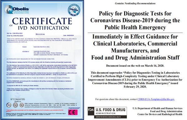 金年会jinnianhui生物作为抗击疫情的一份重要力量,3月3日新型冠状病毒核酸检测试剂已获欧盟CE认证。此外,公司已经启动美国FDA EUA(紧急使用授权)申请,且Pre-EUA已受理,根据美国FDA 3月16日最新发布的新冠肺炎相关检测政策指南,金年会jinnianhui生物新型冠状病毒核酸检测试剂盒可在美国供临床使用,服务当地疫情防控。